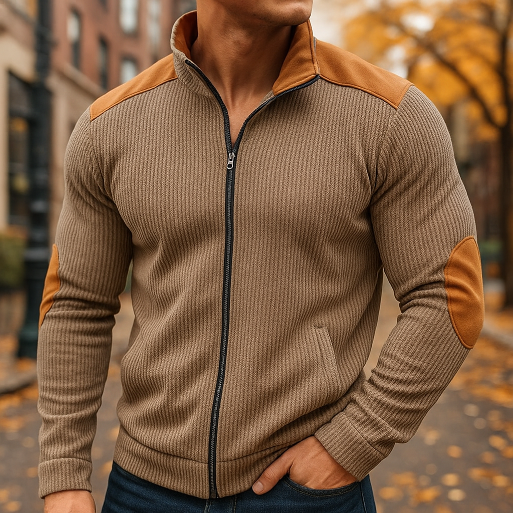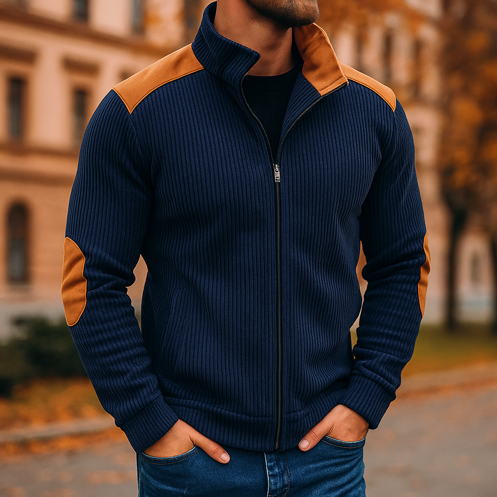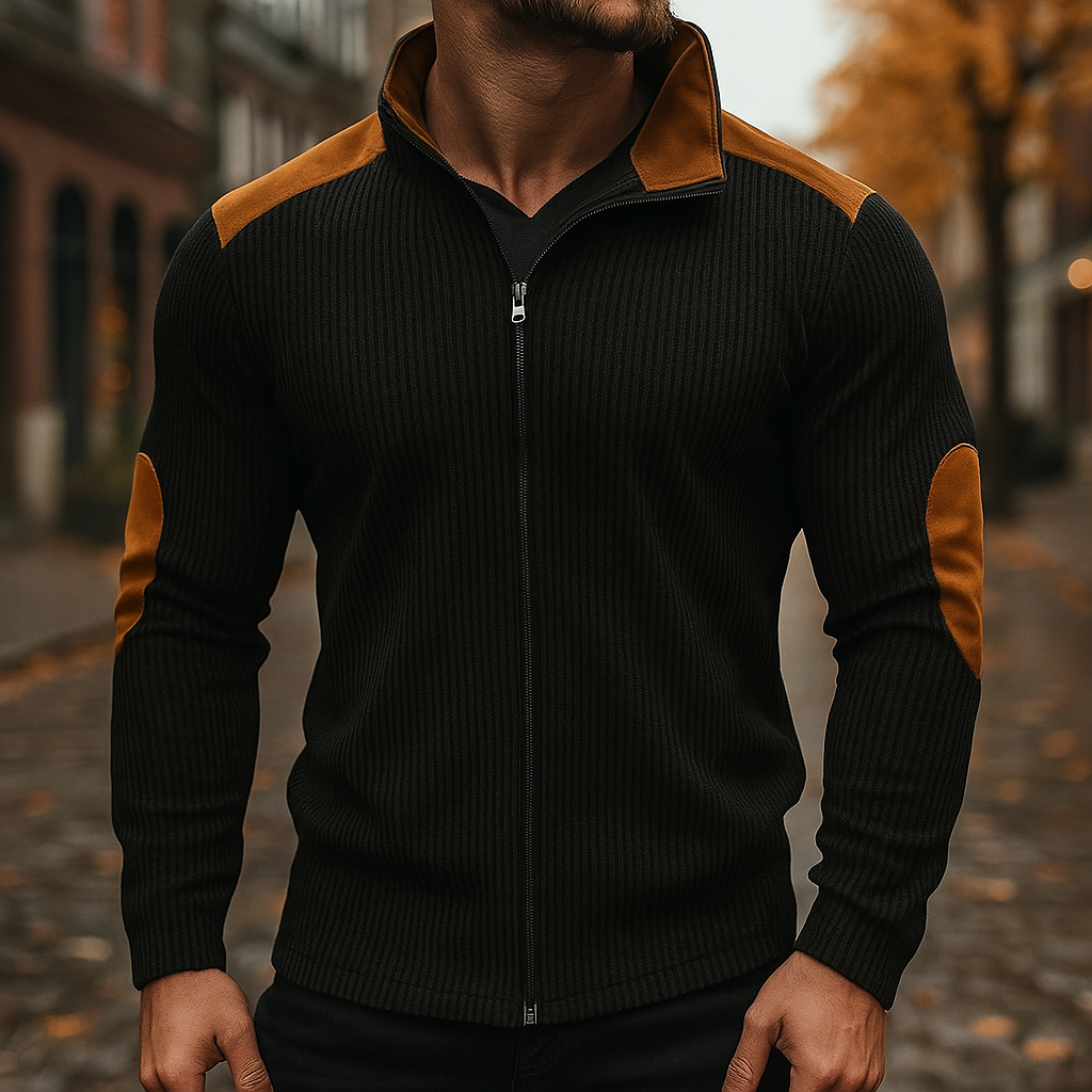 Crafted in a velvet-blend weave, this jacket becomes more than outerwear, it’s a statement. The sculpted leather pads on shoulders, elbows, and collar don’t just add detail, they frame strength and sophistication in every line. Designed for the modern man who commands presence, it moves fluidly between city streets and evening affairs, capturing elegance with an edge.