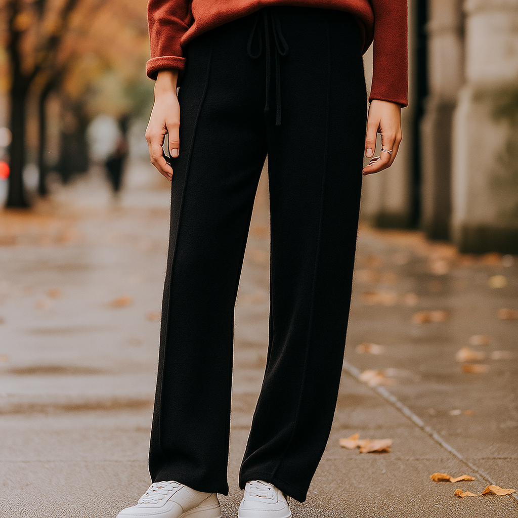Woven from a gentle wool blend, these pants wrap you in quiet luxury, soft to the touch, warm in every step. The adjustable waistband molds to your comfort, turning effortless elegance into your everyday rhythm.